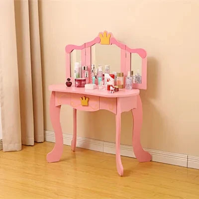 Kids Vanity Table Montessori Style Make Up Mirror Desk