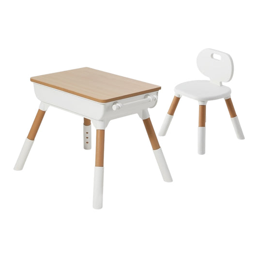 Adjustable Wooden Toddler Table & Chair Set | Modern Kids Desk with Storage