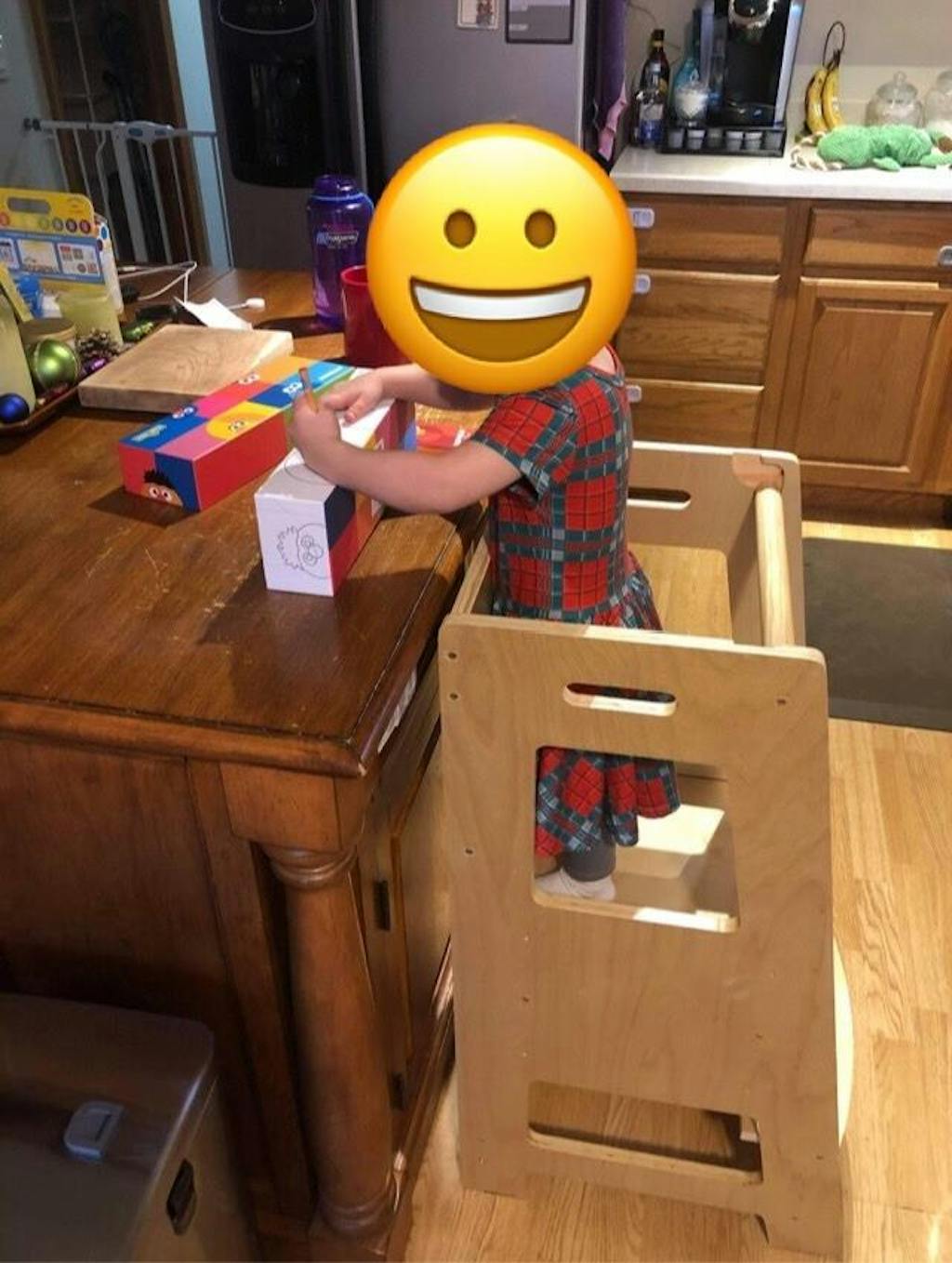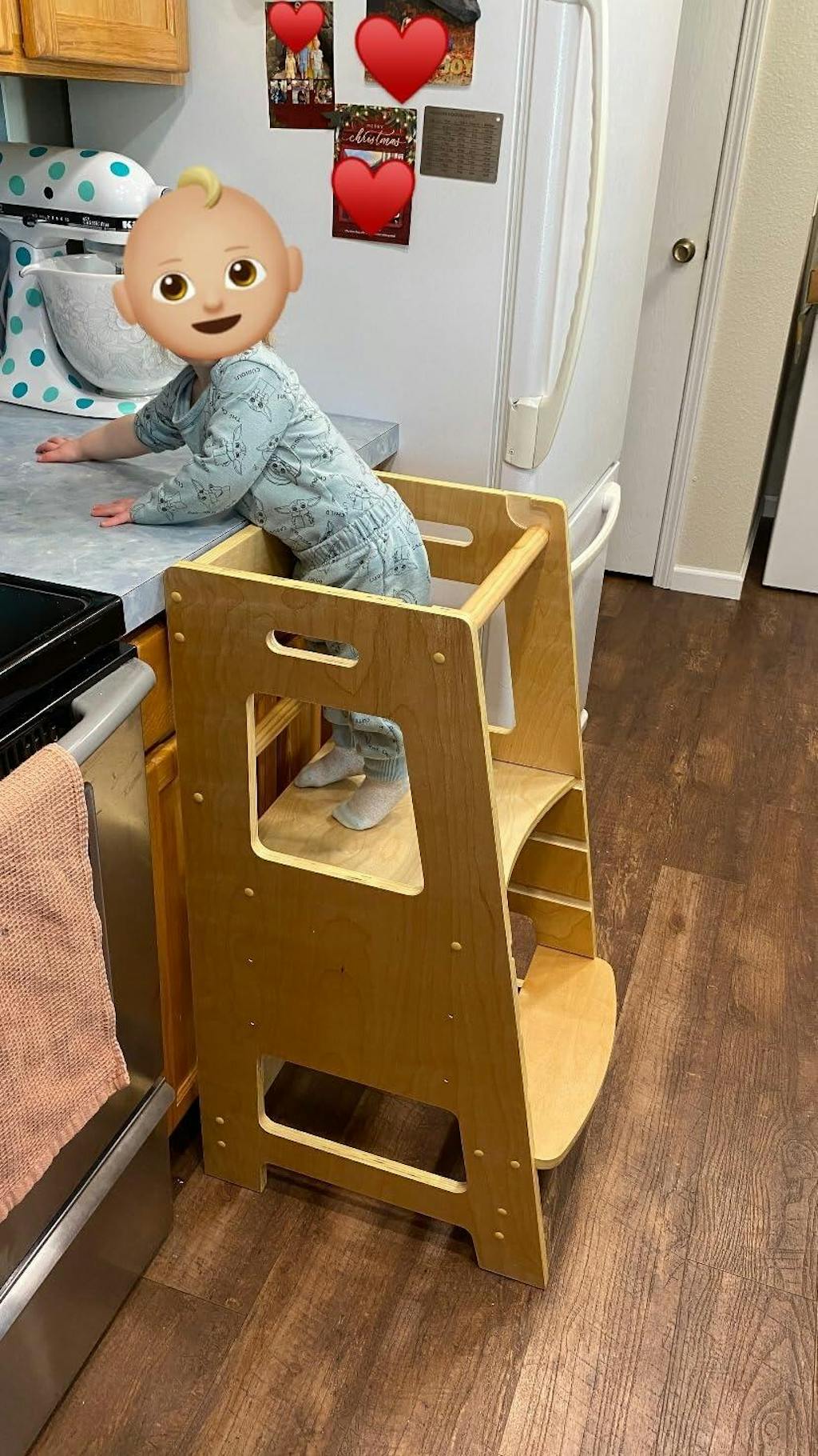 "So happy with our kitchen helper. So easy for my 2 year old to get up onto and be safe while helping or watching in the kitchen. Made from great product and very sturdy and stable. Would highly recommend!"